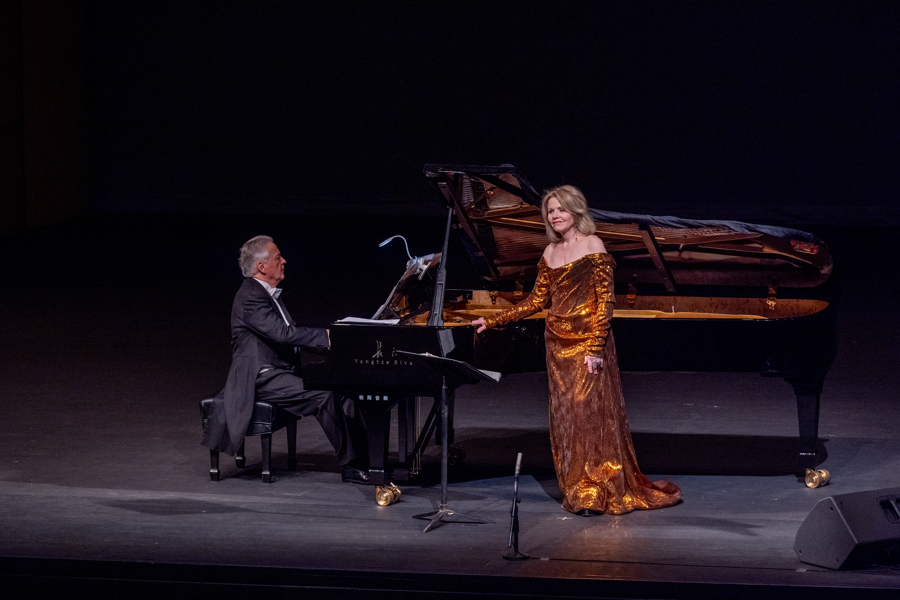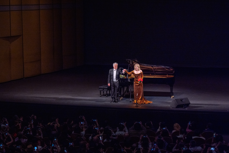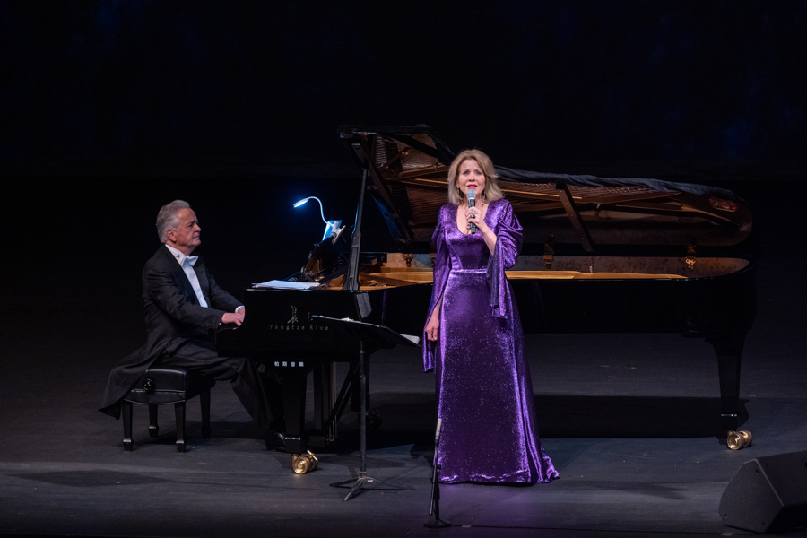当时间倒回演出开篇,弗莱明身着紫色礼服裙登台,舞台屏幕被美国国家地理协会原创影片中的画面点亮——极光漫过雪山、溪流穿林而过、候鸟掠过天际,她的身影与自然景观相融,壮丽景致与歌声深度对话,让观众们既能听见自然,也能看见自然。此次与弗莱明搭档的,是德国钢琴家、上海音乐学院客座教授哈特穆特·霍尔。两人的默契配合,为这场音乐会奠定了温暖基调。
