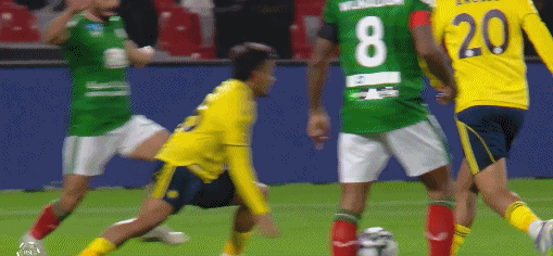 上半场第7分钟,场上出现巨大争议:萨阿德-纳赛尔从身后踩到阿洛赖扬的小腿,裁判第一时间判罚红牌,随后回看VAR之后,又改判黄牌,利雅得胜利逃过一劫。