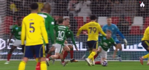 第26分钟,布罗佐维奇角球传中,C罗头球摆渡,菲利克斯后点包抄,近距离推射高出横梁,浪费扳平良机。第35分钟,布罗佐维奇中路横敲,甘纳姆禁区外打出高质量远射,击中横梁弹出,利雅得胜利运气不佳。